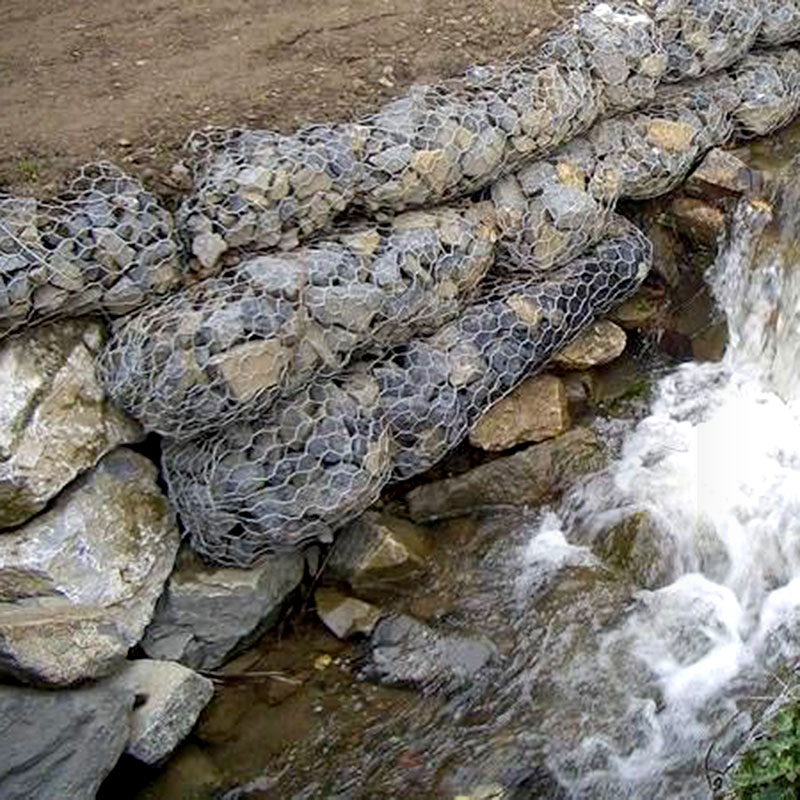 Зачем нужны цилиндрические габионыx Хороший вопрос. Ведь, в отличие от коробчатых, или матрасно-тюфячных, они редко попадаются на глаза. Назвать их пределом мечтаний ландшафтных дизайнеров тоже нельзя: цилиндрические габионы представляют собой сетчатые конструкции круглого сечения, наполненные природным камнем (булыжники, щебень, битый кирпич). Их не рекомендуется использовать в качестве декора клумб, для возведения заборов. Для изготовления габионов такого типа используется сетка двойного кручения, гибкая, прочная и долговечная. Последнее ее качество – заслуга материала, из которого она и производится, ведь цинк не подвержен коррозии металла. Кроме того, она не расплетается на отдельных участках полотна, подобно аналогичным сеткам.
