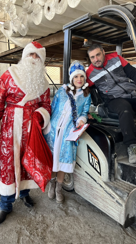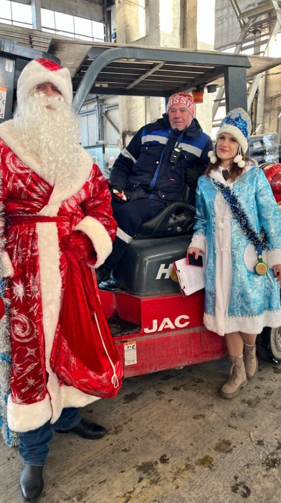 Под задорные новогодние мелодии волшебные гости прошли по цехам, лично поздравив каждого работника с наступающим праздником. Вместо привычного шума оборудования, в воздухе звучали теплые пожелания здоровья, счастья и процветания в новом году, смех и радостные возгласы удивления.